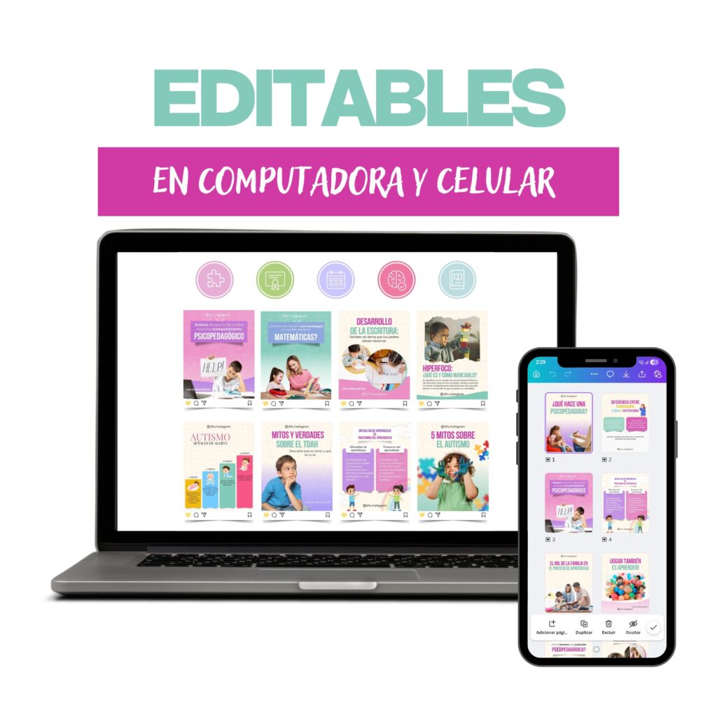 ¡Sí! Solo necesitas descargar la aplicación de Canva y acceder al PACK PARA PSICOPEDAGOGÍA Y NEUROEDUCACIÓN desde allí para crear tus publicaciones directamente en tu celular.